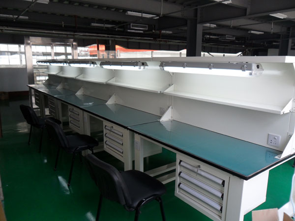工作桌、鐵板工作桌、置物柜排放整齊漂亮