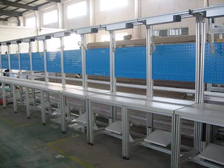 面帶可調節地腳,桌面上面帶掛板,LED燈。互興工作臺漂亮、大