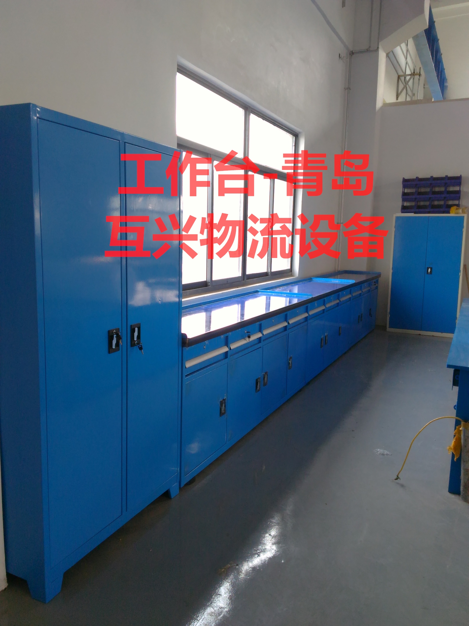 青島互興生產的工作臺臺上可配照明架、吊架、擱板、方孔掛板、百葉掛板、動力電