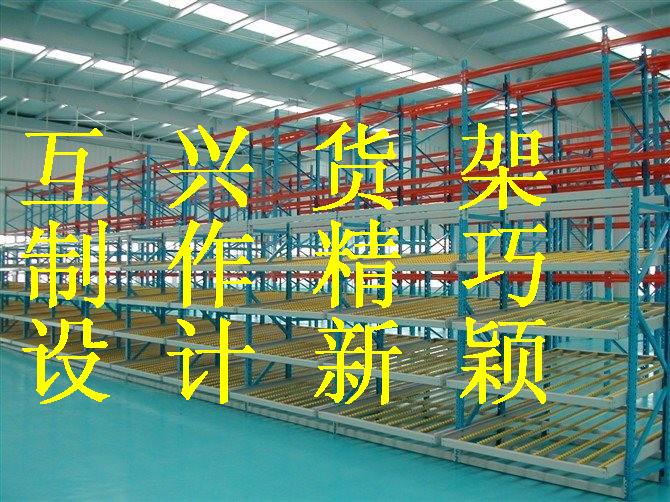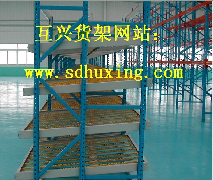 青島互興物流設備生產的流利式貨架又成為滑移式貨架通常由中型橫梁式貨架演變而成,貨架每層前后橫梁之間設置滾輪式鋁合金或鈑金式流力條,呈一定坡度(30左右)放置。貨物通常為紙包裝或將貨物放于塑料周轉箱內利用其自重實現貨物的流動和先進先出,貨物由小車進行運送,人工存取,存取方便,滑移貨架單元貨架每層載重量通常在1000KG以內,貨架高度在2.5米以內。適于裝配線兩側的工序轉換、配送中心的揀選作業等場所,可配以電子標簽實現貨物的信息貨管理.高密度儲存,節省空間,倉儲利用率較普通貨架提高60%以上。提高物流效率,節約時間,物品存取效率是普通貨架的10倍。