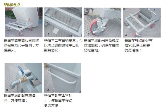 2、鐵屑車含有自鎖裝置,可以防止運輸過程中出現翻轉情況;