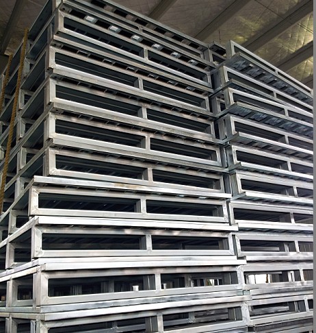 鋼托盤主要材料為鋼材或鍍鋅鋼板,經專用設備成型,各種型材互相支撐,鉚釘連接加強,再經CO2氣體保護焊焊接而成。鋼托盤的優點